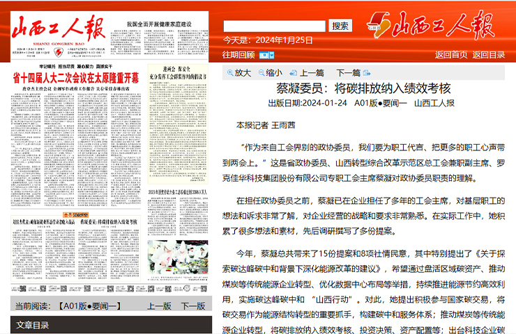 蔡凝委員:將碳排放納入績效考核 “作為來自工會界別的政協委員,我們要為職工代言、把更多的職工心聲帶到兩會上。”這是省政協委員、山西轉型綜合改革示范區總工會兼職副主席、羅克佳華科技集團股份有限公司專職工會主席蔡凝對政協委員職責的理解。 了解更多